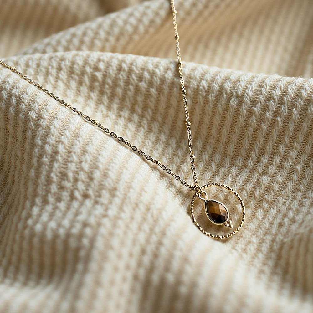 O Colar com Olho de Tigre Pilar é uma peça delicada e cheia de presença, feita para expandir a tua energia e fortalecer o teu centro. Ao mesmo tempo, é um colar muito fácil de usar no dia a dia, porque combina beleza com intenção. E sim, eu gosto mesmo de lhe chamar o cristal feliz.