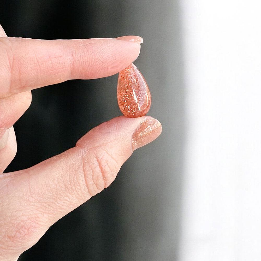 Esta Pedra do Sol da Tanzânia chega à Surya pela primeira vez e traz consigo uma energia que se sente antes mesmo de a mente a compreender. A sua iridescência natural é rara e única: pequenas inclusões de cobre refletidas pela luz criam tons de arco-íris que dançam entre o laranja, o verde e o azul. Esta variedade só existe na Tanzânia e forma-se quando o cobre aquece durante o processo geológico, interagindo com outros minerais e originando este brilho tão característico.