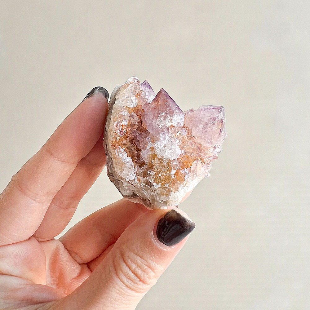 O Quartzo Espírito é um cristal lindíssimo que é composto por um cristal principal coberto por uma segunda camada de pequenos cristais que apontam para o lado oposto do principal. A ponta do Quartzo Espírito surge sem esta segunda camada de cristais. É caracterizado por uma cor lilás ou lavanda muito ténue que, por vezes, não se consegue fotografar e é por isso que o Quartzo Espírito ao vivo é dos cristais que mais chamam a atenção.